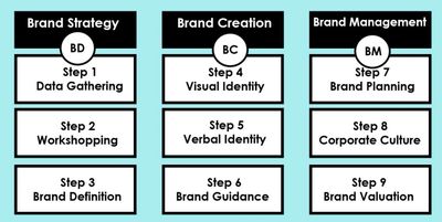 Every project is fundamentally similar with respect to creating a brand. First strategy has to be defined (the consultancy phase), then the branding has to be created (the design phase) and finally the brand is managed over-time (the corporate culture phase).